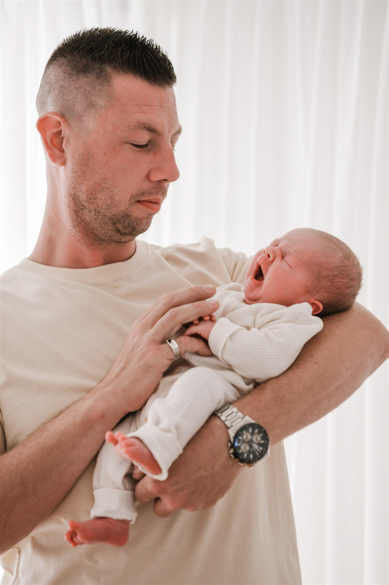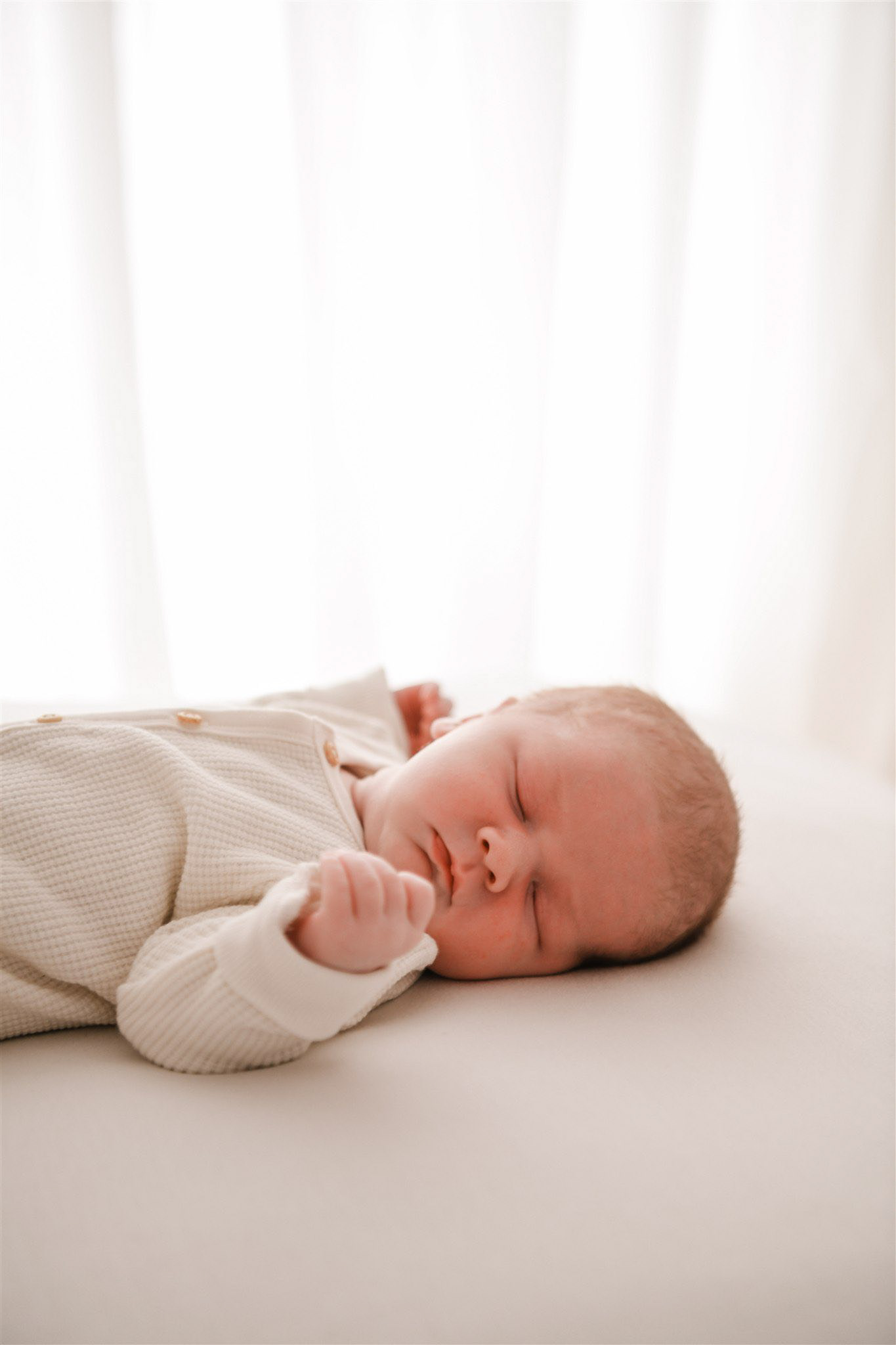 De ideale timing voor een new born shoot is binnen de twee à drie weken na de geboorte. Dan slapen de baby'tjes nog vast en is hun lichaam nog vrij soepel om hen in allerlei houdingen te leggen.